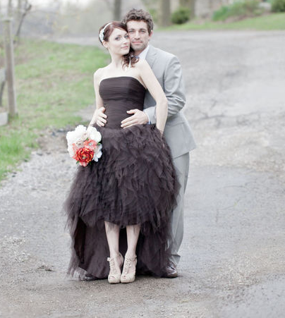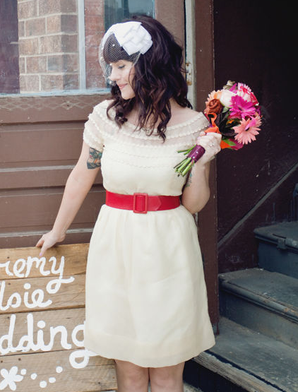 If you're the type of bride who thinks, "A conventional wedding is a boring wedding" then boy do I have the perfect post for you! I don't think there's anything wrong with straying from the usual long, white wedding gown that 99% of all brides opt for. I mean, your wedding should be a reflection of who you are as a person. If you're quirky and fun and totally offbeat, then I'm a strong believer that your dress should match that. Even though it's not MY personal style, I think that these unconventional wedding dresses are fun and beautiful. I give these women major props for daring to be different!