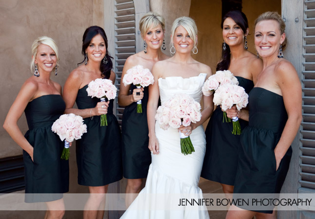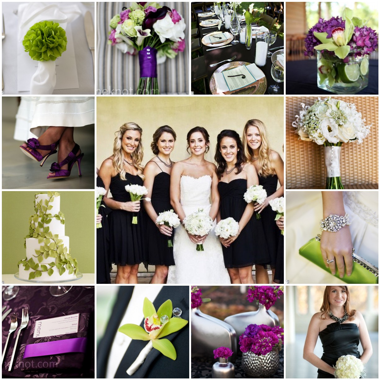 And voîla! My inspiration board is born. I am obsessed with little black bridesmaid dresses, so that is a must. While purple and green may be a bit, "My eyeballs are burning out of their sockets" when done too brightly and elaborately, I think I can pull it off with HINTS of the colors in muted tones. I can't overdo it. So right now I'm thinking: black, silver, dark purple & green. Ya? Ya? What do you think?